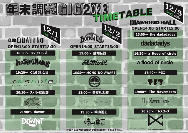 愛知 名古屋CLUB QUATTRO/名古屋THE BOTTOM LINE/名古屋DIAMOND HALL